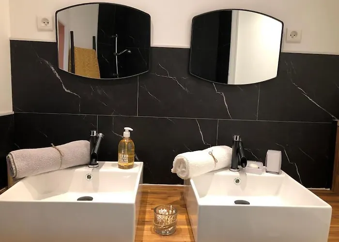 - ❓Welche Ausstattung bieten Badezimmer in des Apartments F2 Tout Confort?Das Apartment F2 Tout Confort verfügt über Badezimmer, ausgestattet mit einem Haartrockner und Badelaken.